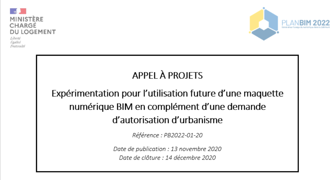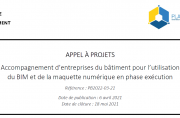 Cet appel à projets vise à soutenir les porteurs de projets (entreprises du bâtiment) et/ou MOE qui souhaitent mettre en place des démarches BIM ambitieuses sur des chantiers en cours ou à venir, sur le territoire français, en y associant les parties prenantes du projet de construction.